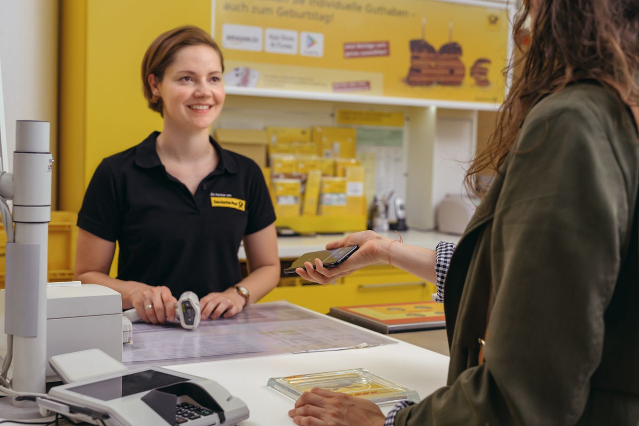- Die Empfangsperson wird per E-Mail benachrichtigt und kann durch Vorzeigen des Abholcodes auf dem Smartphone oder mit der ausgedruckten Mail die Sendung in der Filiale abholen.